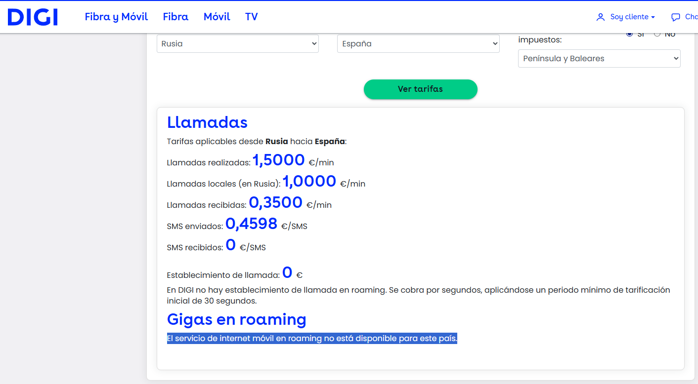 Por otro lado supuestamente en mi estancia de 3 meses mi tarjeta de DIGIMOBIL no funciona en Rusia
