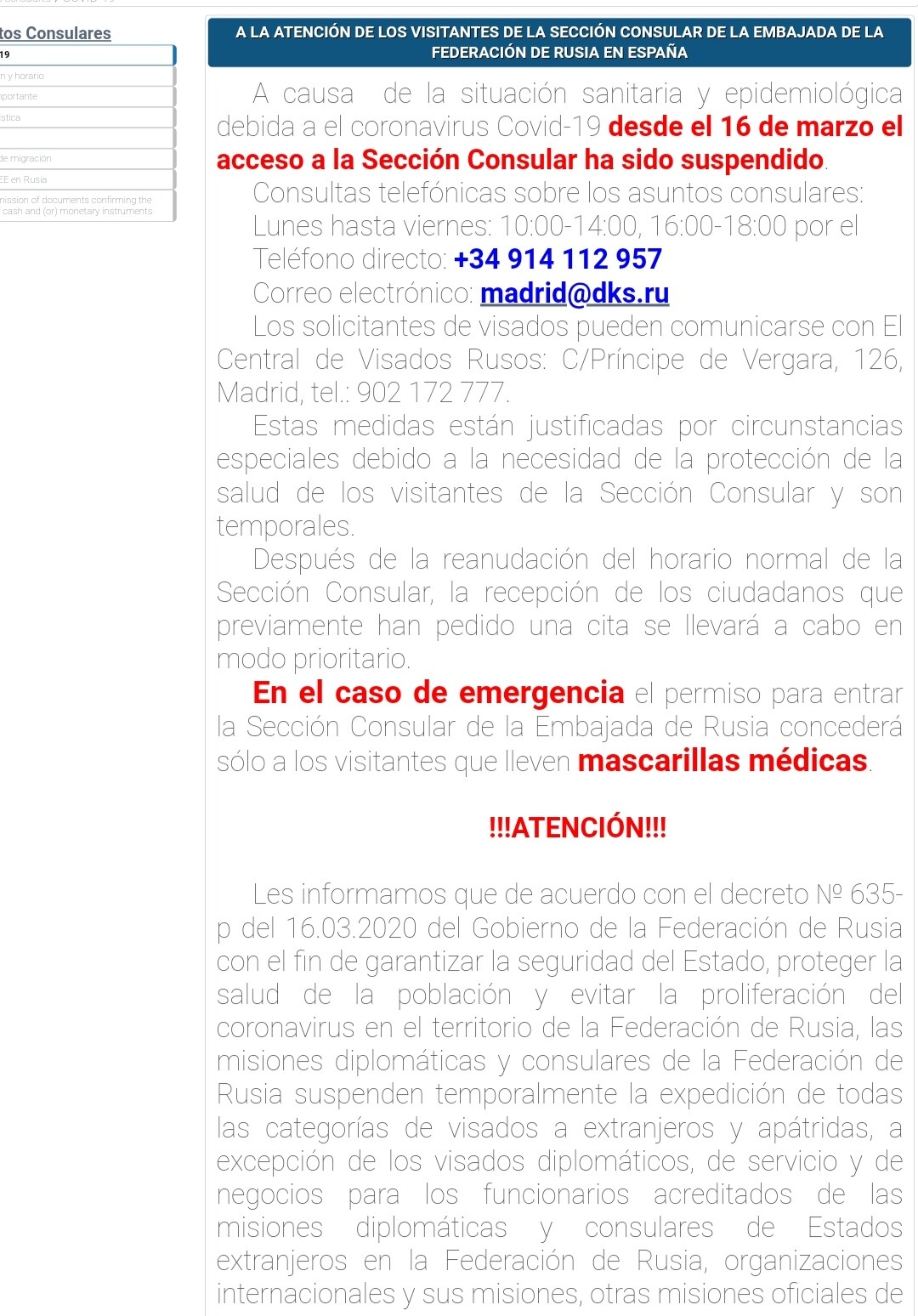 Lo que si es cierto es que desde el año pasado en la página web del consulado ruso en Madrid indicaban que estaba cerrado al público por el COVID 19. ( Sólo la parte española, en el portal ruso no. ) En cambio ahora dice que la sección consular abre el 1 de junio. No digo que a partir de esa fecha se pueda viajar a Rusia pero por algo será…no faltará demasiado.